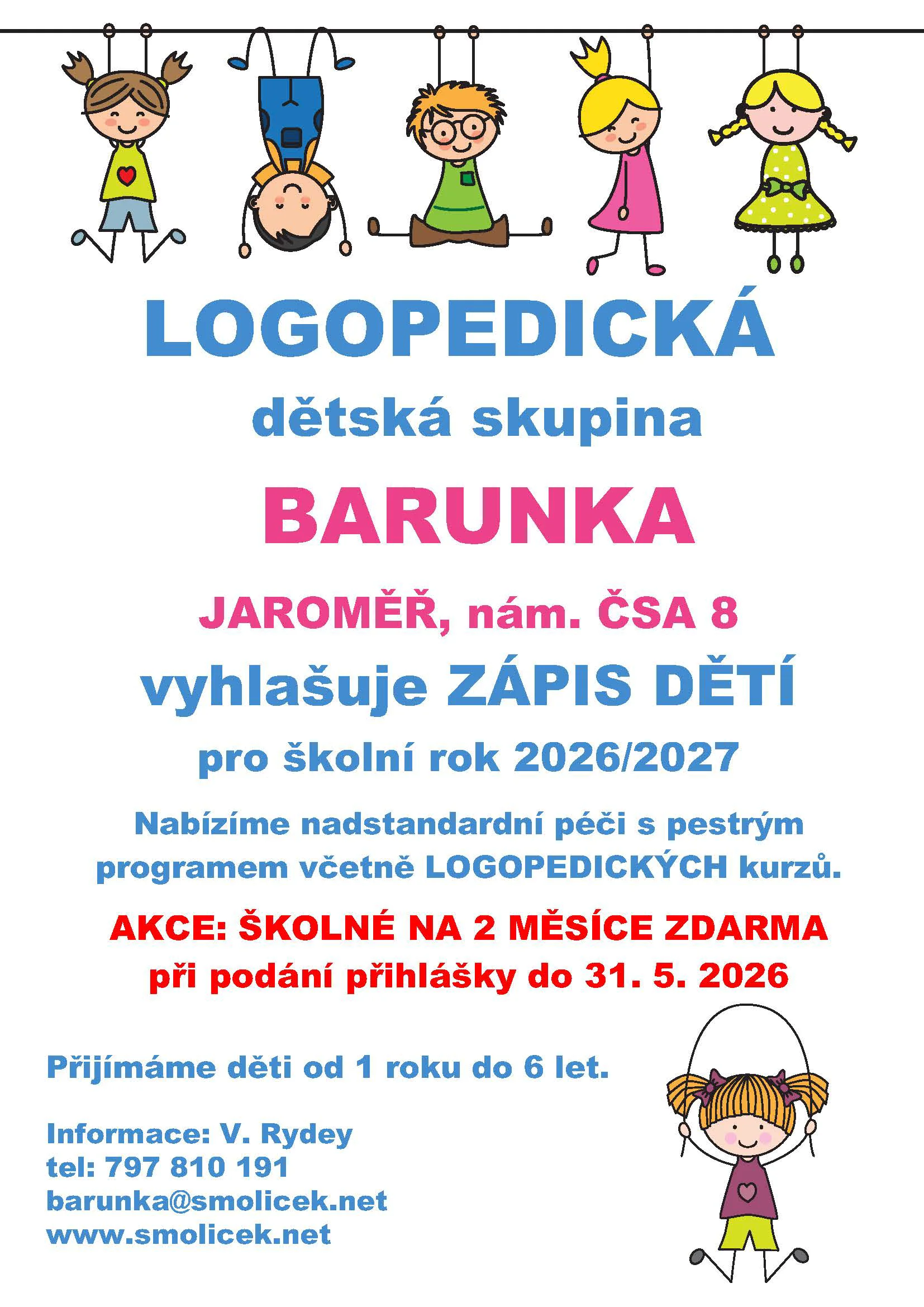 Dětská skupina s kapacitou 12 míst pro děti od 1 roku až do 6 let.