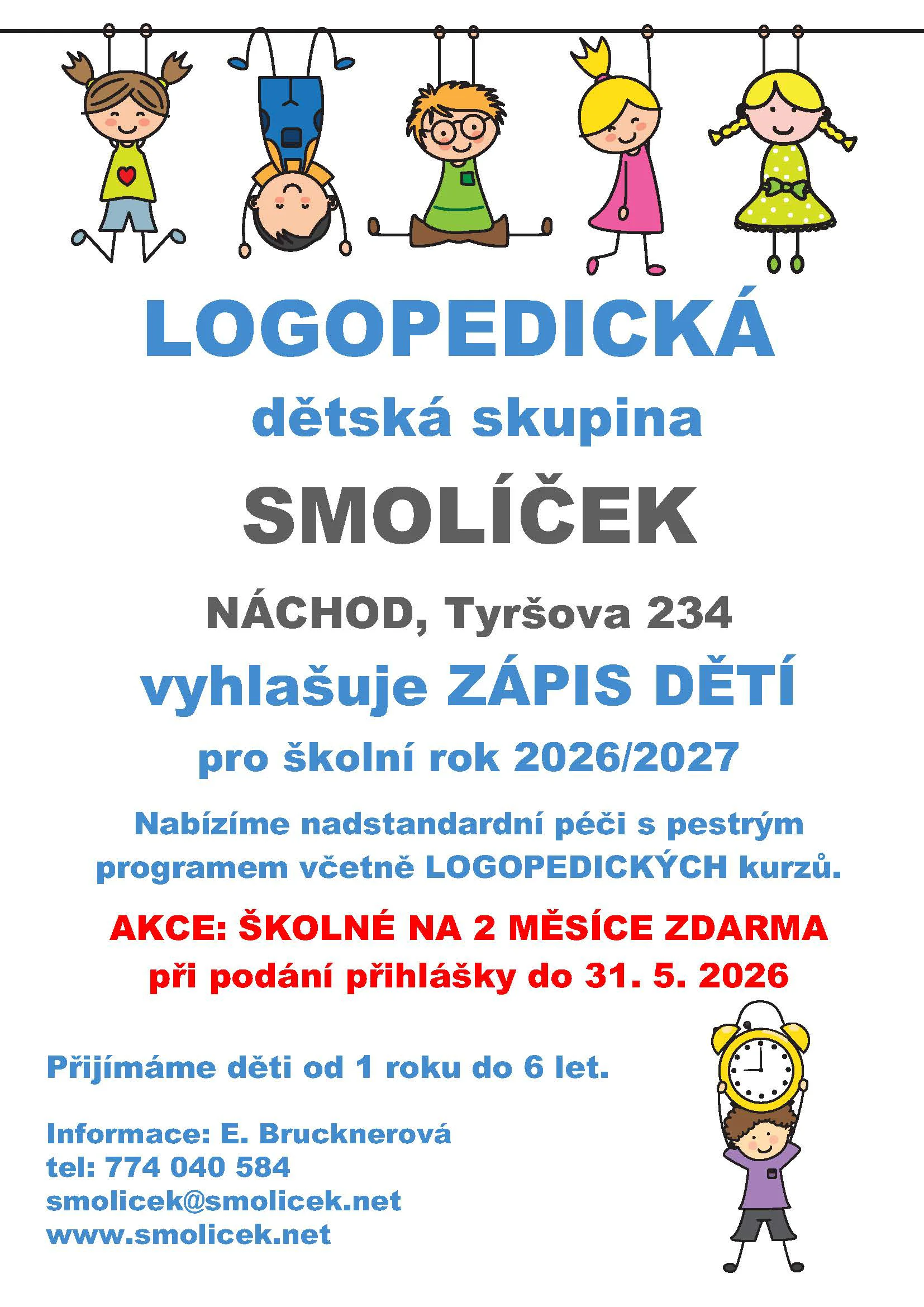 Dětská skupina s kapacitou 12 míst pro děti od 1 roku až do 6 let.